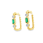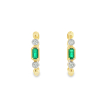 0.38cttw Natural Emeralds with 0.12cttw Natural Diamond Hoop Earrings in 14K Yellow Gold