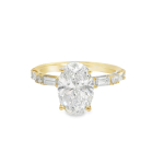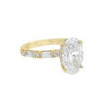 Indulge in the refined elegance of our 2.55CT F VS2 Oval Lab Diamond Ring, beautifully set in lustrous 14K yellow gold. This exquisite piece is a testament to eco-friendly luxury, featuring a stunning 2.55-carat oval lab diamond as its centerpiece, complemented by 0.70cttw lab accent diamonds that add a touch of brilliance to the band. The warm glow of the yellow gold setting enhances the diamond's sparkle, making it a perfect choice for those who appreciate timeless sophistication with a modern twist. Ideal for engagements or special occasions, this ring promises to captivate and charm, offering a sustainable yet opulent option for the discerning jewelry lover.