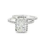 Celebrate your love with our exquisite 2.71CT D VS1 Radiant Cut LAB Diamond Bridal Set, crafted in lustrous 14K white gold. This stunning engagement ring and wedding band combo features a radiant cut lab diamond centerpiece, surrounded by 3/4cttw lab diamond accent stones that shimmer with every movement. The sustainable luxury of lab-grown diamonds ensures a guilt-free sparkle, perfect for the eco-conscious bride. The sleek, modern design of the semi-mount set offers a timeless elegance that complements any style. Available in a brilliant white gold finish, this set is designed to make your special day unforgettable. Embrace the future of fine jewelry with this dazzling symbol of your commitment.