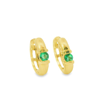 14K Yellow Gold Hoop Earrings Set with a Single Round Emerald - Estate
