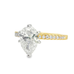 Elevate your elegance with our exquisite 2.07CT I SI1 Pear Shape Lab Diamond, meticulously set in luxurious 14K 2-Tone Gold. This GCAL Certified gem is a testament to timeless beauty and sophistication. The pear shape of the diamond catches the light beautifully, creating a dazzling display of brilliance. Accentuated by side stones, this piece offers a harmonious blend of classic and contemporary design, perfect for those who appreciate refined luxury. Whether you're attending an elegant soirée or adding a touch of glamour to your everyday ensemble, this estate piece is a testament to your impeccable taste. Indulge in the allure of lab-grown diamonds, combining ethical sourcing with exceptional quality.