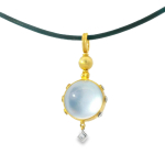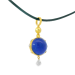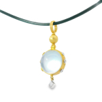 Lika Behar 24K DAY-N-NIGHT TRIPLET PENDANT, 0.12cttw Natural Diamonds and includes a 2mm Black Leather Cord Necklace w/14K Clasp